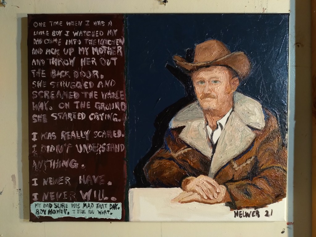 THROWING MOM OUT OF THE HOUSE. Acrylic on canvas. 16″ x 20″. Share this: Click to share on X (Opens in new window) X Click to share on Facebook (Opens in new window) Facebook Click to share on Pinterest (Opens in new window) Pinterest Click to share on Tumblr (Opens in new window) Tumblr Like Loading... Related